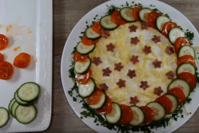 Ova dekorativna i vrlo ukusna slana torta tako je bogata da može biti jedino predjelo za svečani praznični ručak!
