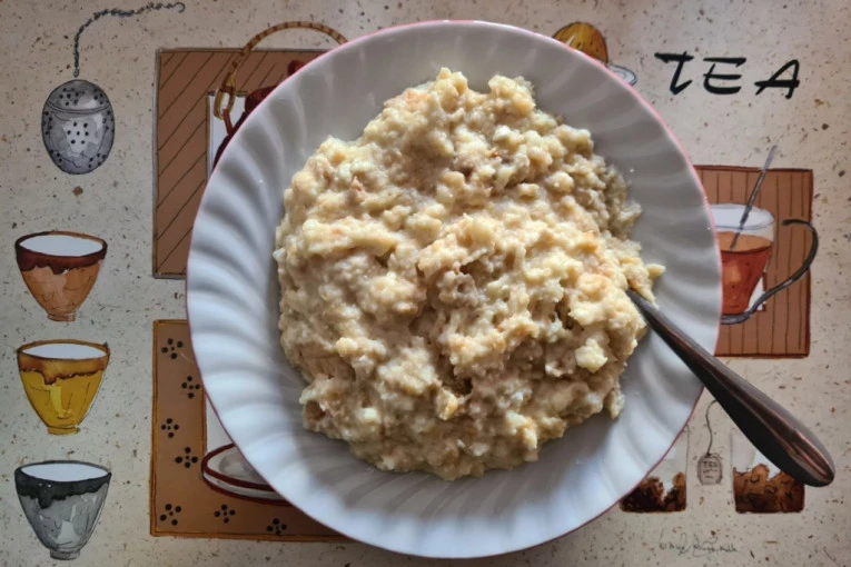 U međuvremenu je izgnječen sir, dodato kajmače i iscepkan hleb