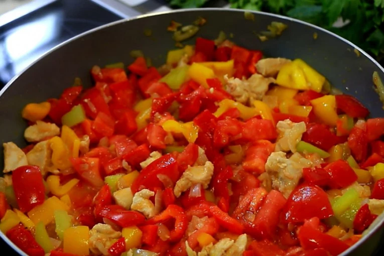 Po želji, možete dodati malo iseckanog paradajza ili karfiola. Poklopite i kratko dinstajte. Mešajte jelo, a nakon 10 minuta vaša zdrava večera je spremna.