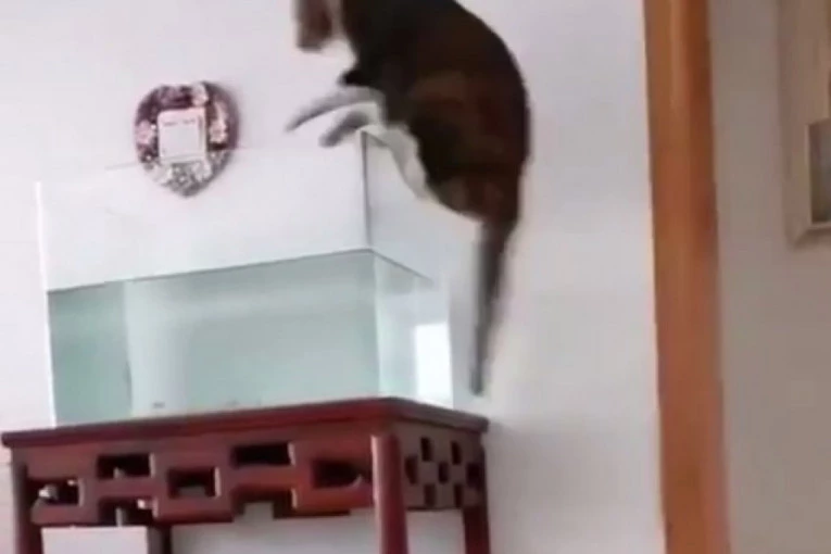 (HIT VIDEO) Kao scena iz crtanog filma: Mačka pokušala da preskoči akvarijum, ali sve je pošlo po zlu!