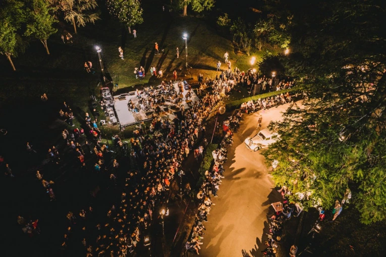 Foto: V. VeličkovićStotine modnih enuzijasta okupilo se da pod zelenim krošnjama ukrašenim roze trakama kako bi proslavili ovu manifestaciju koja već pet godina za redom, dva puta godišnje, Srbiju stavlja u žižu modnog mnjenja. Šljokice, kožu, til i saten budnim okom su iz prvog reda pratili vrsni modni poznavaoci među kojima su bili i Zvonko Marković, Vasilije Kovačev, Boško Jakovljević i Srđan Šveljo, a jedan od počasnih gostiju bio je i Fran Perea, španski glumac domaćoj publici poznat iz tv serije Seranovi. Po rečima Svetlane Horvat, predsednice Serbia Fashion week-a i potpredsednika Ejmerika Fransoe, ovo je tek početak iznenađenja koja slede u narednim danima ove manifestacije.