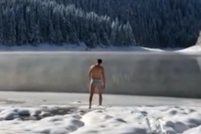 (VIDEO) LUDILO: Rus se kupa u ledenom Crnom jezeru!