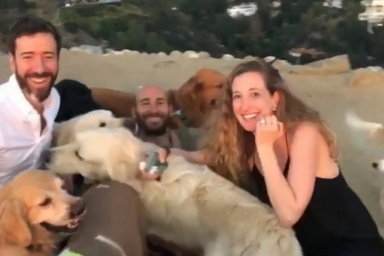 (VIDEO) Zaprosio je devojku, i čekajući njen odgovor držao u "zasedi" 16 pasa