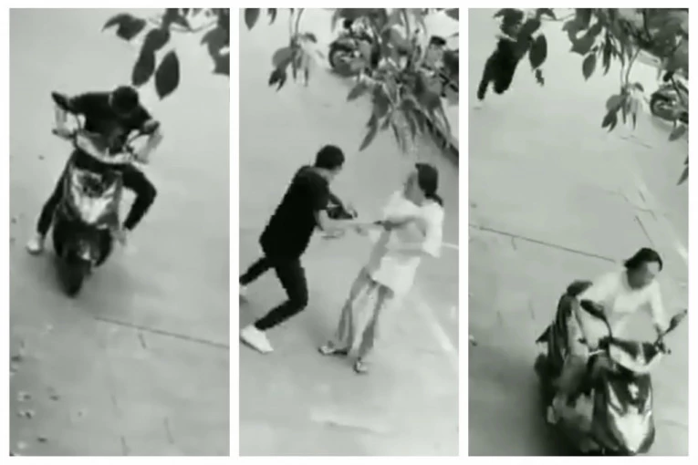 (INSTANT KARMA) Pokušao da joj ukrade torbicu pa ostao bez motora