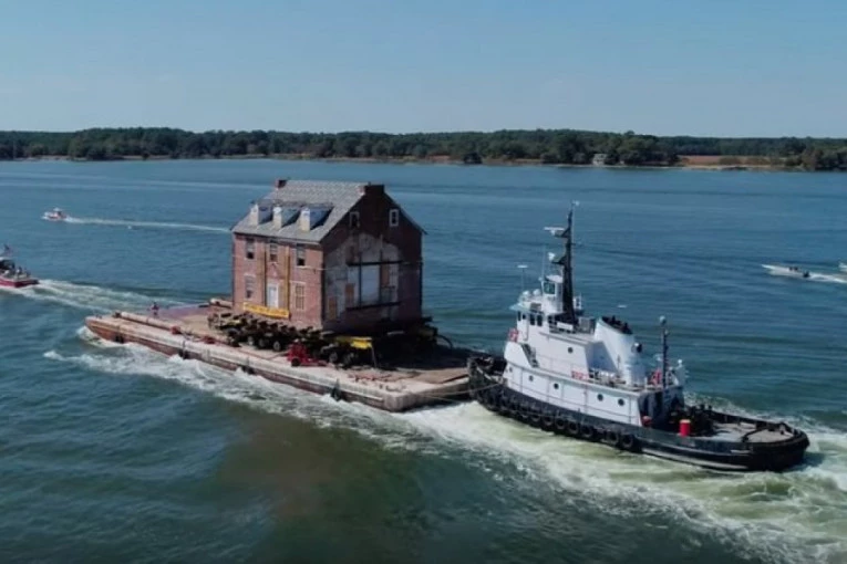 Kuća teška 400 tona prevezena je rekom Tred Ejvon od grada Iston do Kvinstauna u američkoj saveznoj državi Merilend, prenose američki mediji.