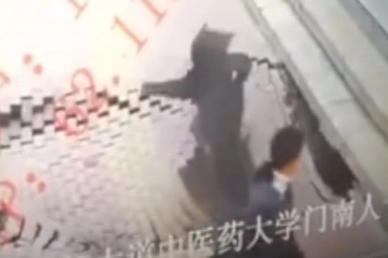 Šokantan snimak nastao u Kini pokazuje dramatični trenutak kada se usred trotoara pojavila velika rupa i u nju upala jedna prolaznica.