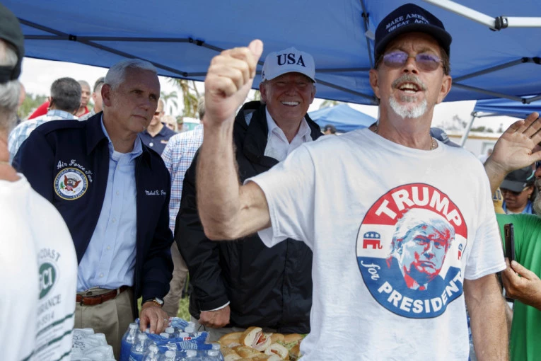 Američki predsednik Donald Tramp delio je sendviče, a potpredsednik Majk Pens banane u kampu u kojem su smešteni građani Floride koja je u potpunosti uništena u uraganu Irma. Jedna scena se posebno izdvojila kao najzanimljivija, a to je trenutak kada je jedan čovek dobio "duplu pomoć" posle velike katastrofe, a razlog je bio na njegovoj majici.