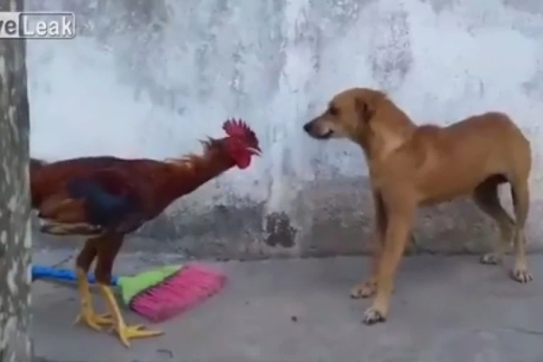 KO JE GLAVNI U DVORIŠTU: Petao nasrnuo na psa, urnebesna završnica!