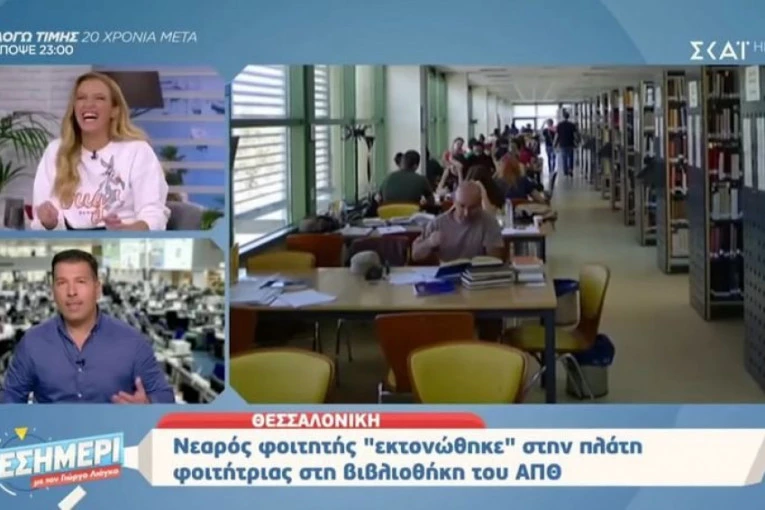 Jedna od najtužnijih scena u istoriji televizije u Grčkoj odigrala se prošlog četvrtka kada se u popodnevnu emisiju koju vodi čuveni voditelj Jorgos Ljangas, uključio dopisnik iz Soluna sa najnovijom informacijom. Naime, u biblioteci Univerziteta Aristotel u Solunu dogodila se scena seksualnog uznemiravanja jedne studenkinje kojoj je kolega ejakulirao u leđa dok je učila za ispit.
