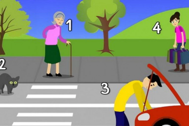 Dobro pogledajte ilustraciju i zamislite da se nalazite na samom mestu događaja. Zatim odgovorite najbrže što možete – kome ćete prići da pomognete?