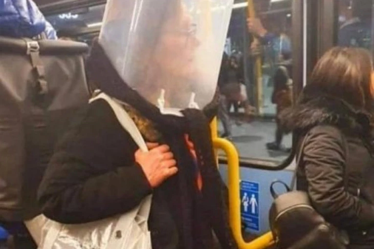 Tako je na društvenim mrežama objavljena fotografija žene koja je navodno nastala na liniji beogradskog autobusa broj "26", a na kojoj se vidi putnica koja da bi se zaštitila od korona virusa nosi na glavi – kofu.