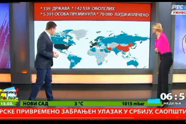 Naime, tokom izveštavanja o stanju koronavirusa u svetu, voditelji sa RTS-a nikako nisu mogli da se usaglase oko imena države koju su pokazivali na karti.