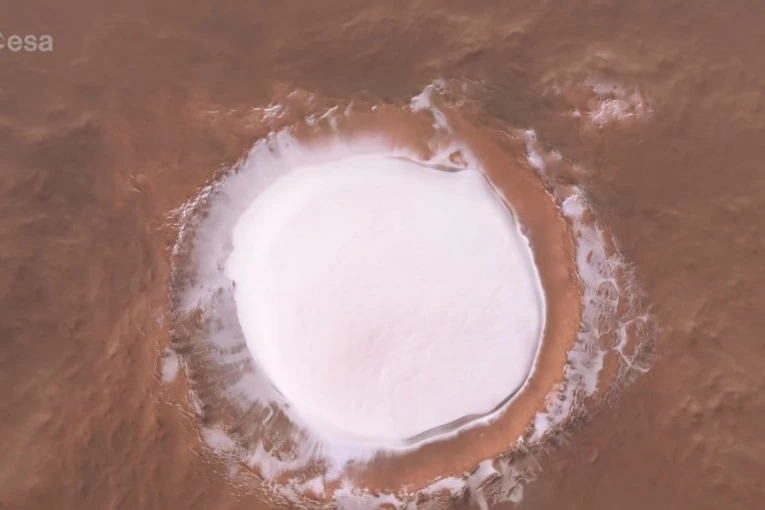 Evropska svemirska agencija objavila je spektakularni snimak kratera na Marsu koji bi mogao da omogući naseljavanje ljudi i da bude izvor vode za ljudsku koloniju ako se ona ikada oformi na susednoj planeti. Krater Koroljev, ispunjen ledom, snimljen je iz vazduha.