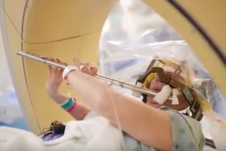 I ne samo to. Morala je da svira flautu, da bi doktori imali uvid u uspešnost same operacije.