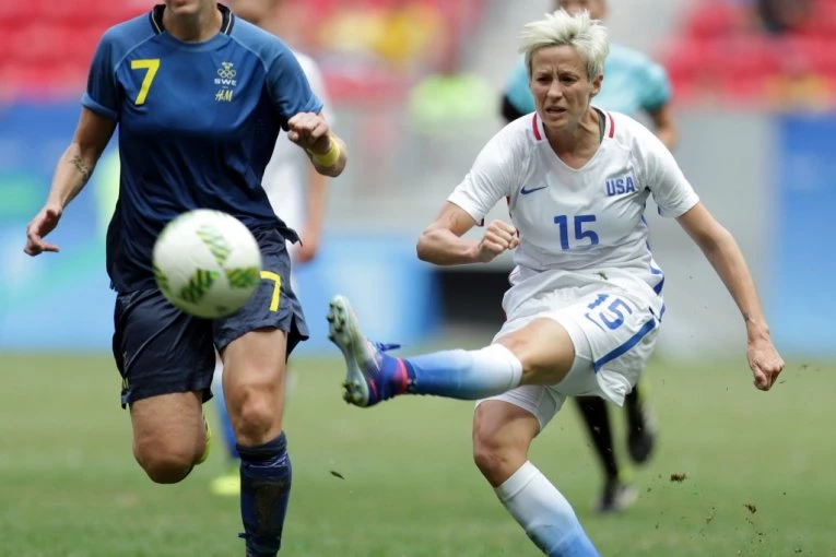 Foto: Tanjug/APMegan Rapino jedna od najiskusnijih i jedna od tri igračice koje nose kapitensku traku u reprezentaciji SAD i već godinama tokom intoniranja himne izražava protest zbog socijalnih nejednakosti u Americi i na taj način podržava Kolina Kapernika koji je prvi među NFL igračima počeo da kleči tokom intoniranje hine.