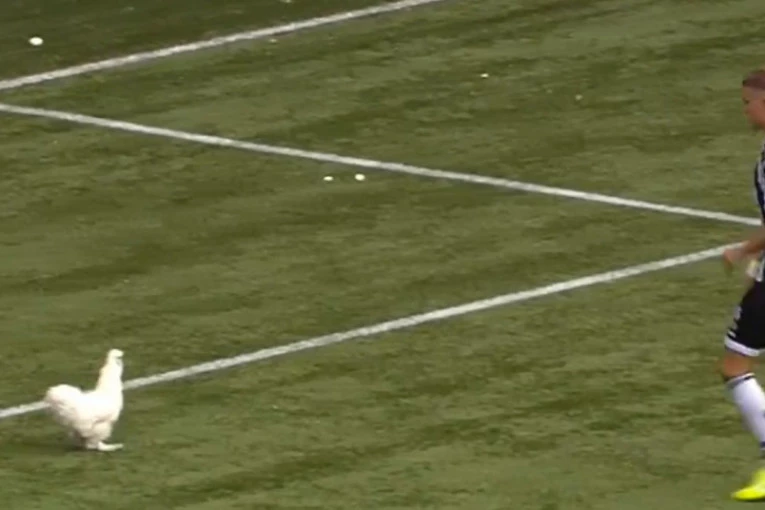 Simpatično pernato stvorenje nije se dalo tako lako, pa su je u jednom trenutku zajedničkim snagama hvatali fudbaleri domaćeg tima i stjuardi na stadionu.