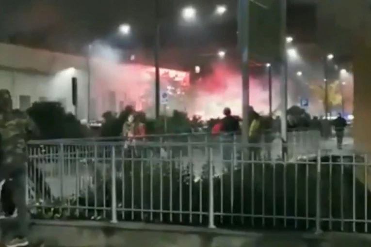 Foto: twitter.com/Ivan ŽeželjPred stadionom su ih napali navijači Atalante, a kako prenose hrvatski mediji, u sukobu su korišćenje flaše i baklje.