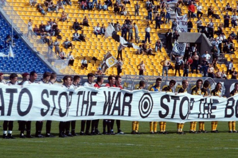 Meč je i odigran u jeku bombardovanja Srbije od strane NATO snaga. Prvotimci oba tima su pred 15.000 navijača, dok je na snazi bila vazdušna opasnost, istrčali sa simbolom mete na dresovima uz transparent sa porukom: ,,NATO, prekini rat, prekini bombardovanje”.
