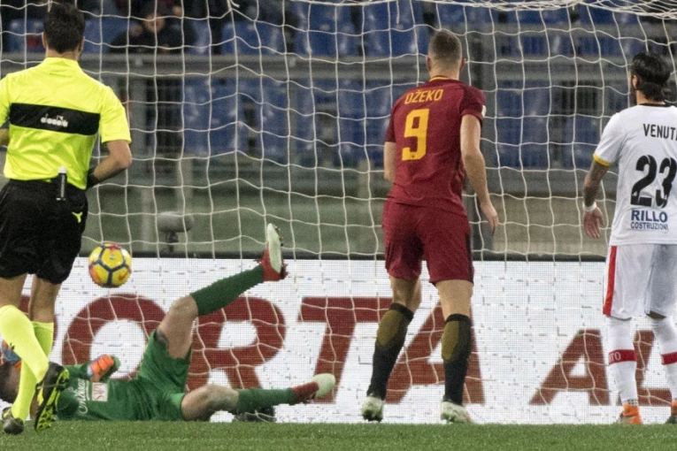 Foto: Tanjug/APGolove za Romu postigli su Facio u 26. minutu na asistenciju Aleksandra Kolarova, Džeko u 59, Under u 62. i 75. i Defrel iz penala u 92. minutu.