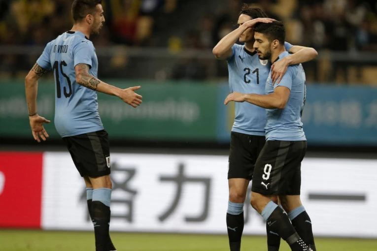 Foto: Tanjug/APUrugvajci su posao završili već u prvom poluvremenu. Strelci su bili Luis Suares iz penala u 10. i Edinson Kavani u 37.