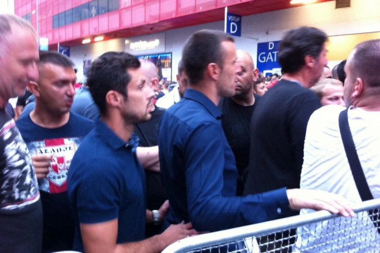 Foto: ST/D.K.Preko 2.000 navijača stiglo je da bude uz ekipu Vladana Milojevića. Na stadionu u Trnavi bilo je moguće videti dva poznata lica. Bivši igrači crveno-belih, inače kumovi Dušan Anđelković i Aleksandar Luković došli su da bodre Zvezdu i svoje bivše saigrače.