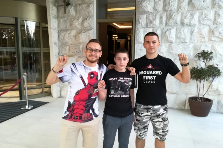 Foto: DO/STBoban, Jovan i Nikola, tri momka iz Podgorice došla su ispred hotela u kom su odseli naši reprezentativci kako bi ih sačekali i slikali se sa njima. Oni će ovog četvrta biti na stadionu, a naravno, nemaju dilemu za koga će navijati - za Srbiju.