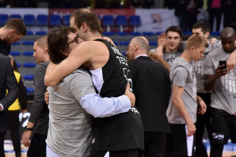 Košarkaši Partizana pobedili su ekipu Crvene zvezde - 76:74 u prilično dramatičnom finalu Kupa Radivoja Koraća. Tim Andree Trinkijerija je tako uspeo da odbrani trofej osvojen prošle sezone, a trener crno-belih nije krio oduševljnje, pa je na proslavi povodom osvojenog trofeja poklekao pred "izaovom" koji vlada među srpskim sportistima i sportskim radnicima u Srbiji, pa je i on postao "pauk".
