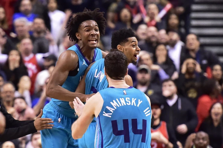 Košarkaš Šarlot Hornetsa Džeremi Lemb postigao je neverovatan koš za pobedu sa više od pola terena na gostovanju Toronto Reptorsima u NBA ligi.