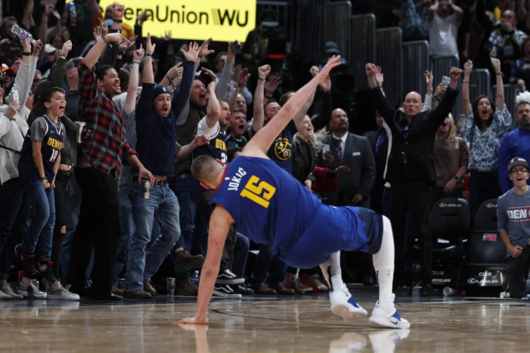 Foto: Tanjug/APJedan ljubitelj košarke iskoristio je priliku da albu NBA ligi na činjenicu da se Nikola Jokić, fotografisao sa mnogim našim iseljenicima koji su došli na meč između Кavalirsa i Denver Nagetsa.