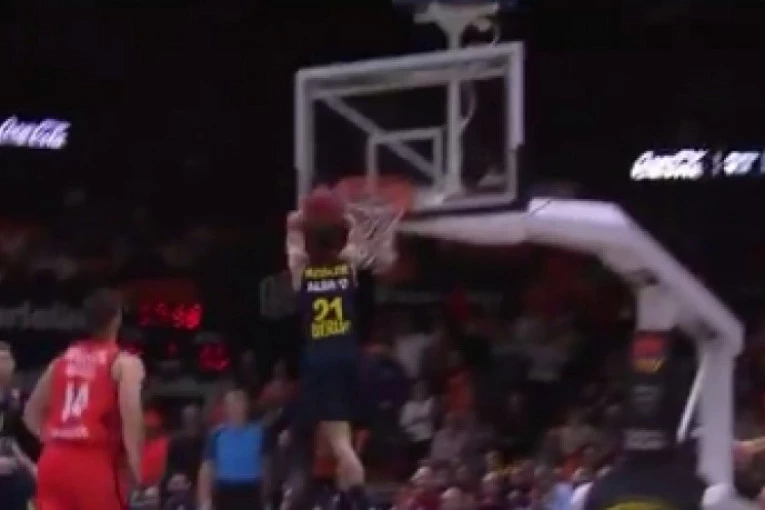 Foto: twitter.com/EuroCupNeverovatna blokada Mikela Gladnesa nakon pokušaja zakucavanja Marka Čakarevića na utakmici Bilbao - Partizan zauzela je devetu poziciju.