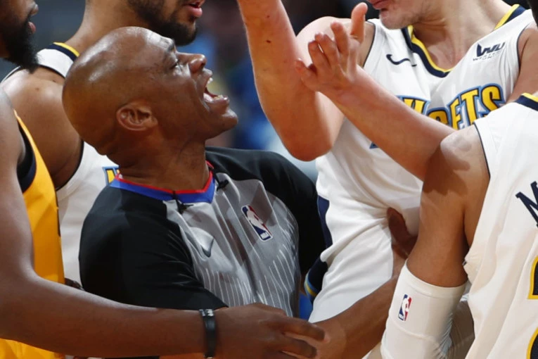 Foto: Tanjug/APNekoliko minuta pre kraja duela Denvera i Jute Jokić je dobio "flagrant 2" faul nakon duela sa Jonasom Jerebkom.