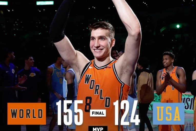 Foto: twitter.com/NBATim sveta je slavio sa ubedljivih 155:124, a za MVP igrača proglašen je Bogdanović.