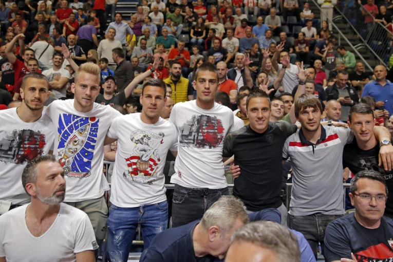 Fudbaleri Crvene zvezde bodrili su košarkaše crveno-belih u prvom meču finala plej-ofa ABA lige protiv ekipe Budućnosti.