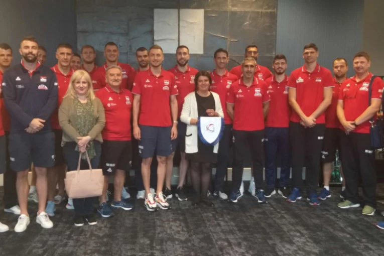Dr Marina Jovićević, ambasador Srbije u Belgiji, posetila je juče mušku seniorsku reprezentaciju Srbije u hotelu Vand der Valk u Briselu.