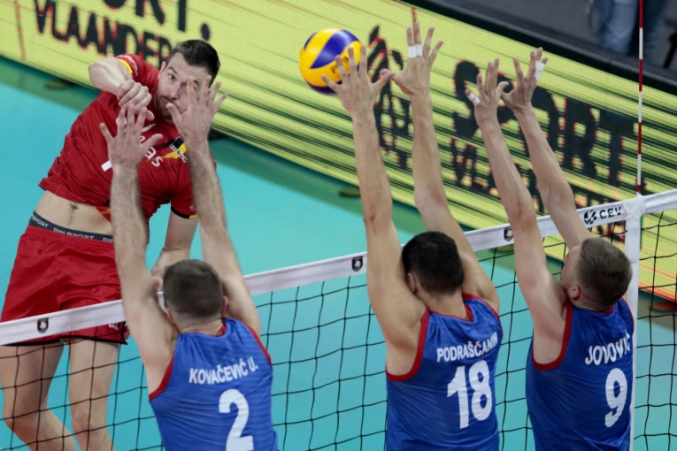 Foto: Tanjug/APNastavili su naši momci sa sjajnom igrom i u potpunosti nadigrali Belgijance i dobila 3. set sa 25:19 u trećem setu i poslala jasnu poruku rivalima.