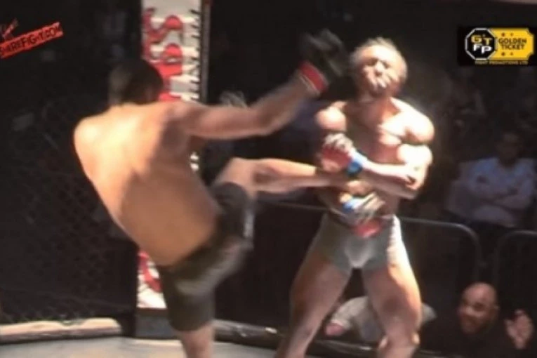 Jedna od najbrutalnijih scena u MMA ringovima ovog vikenda viđena je u engleskom Vulverhemptonu, gde je Samjuel Ilnicki strahovitim udarcem nogom pokosio Salomona Rodžersa.