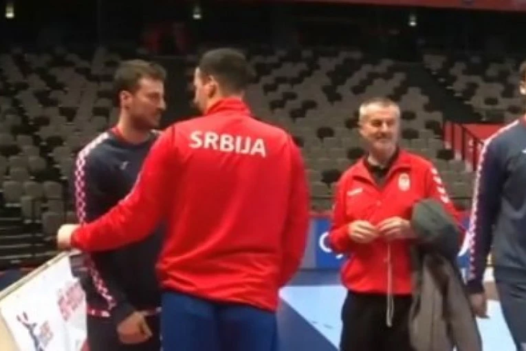 Rukometaši Srbije i Hrvatske srdačno su se pozdravili na treningu u Spaladium arenu u Splitu uoči meča dve selekcije u prvom kolu grupe A na Evropskom prvenstvu.