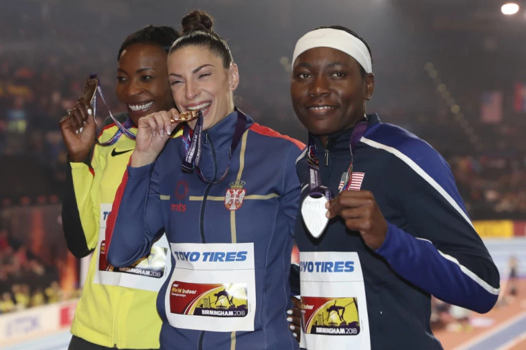 Foto: Tanjug/APIvana Španović je pobedila u finalu skoka u dalj na SP u dvorani u Birmingemu. Ona je ostvarila najveći uspeh u istoriji srpske atletike i objedinila evropsko i svetsko zlato.