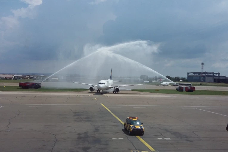 Foto: PromofotoOlimpijskim i evropskim šampionima na pisti aerodroma Nikola Tesla upriličen je vodeni luk, koji se koristi samo u specijalnim prilikama za veliki doprinos državi.
