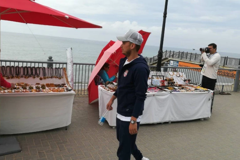 Fudbaler Srbije, Adem Ljajić nalašao se u grupi fudbalera Srbije koji su izašli da razgledaju grad i Baltičko more, a fudbaler Torina je prvi put gestikulacijom odgovorio na pitanje o povredi.