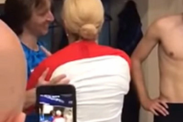 Nije mogla da izdrži... Predsednica Hrvatske Kolinda Grabar-Kitarović je, posle pobede njenog tima nad danskom selekcijom na Svetskom prvenstvu, otišla u svlačionicu na slavlje "vatrenih" gde se izgrlila sa igračima i selektorom.