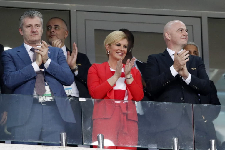 Foto: Tanjug/APU svlačionici im se potom priključila i predsednica Hrvatske Kolinda Grabar Kitarović, koji je takođe pevala ove pesme.