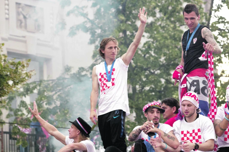 - Pijani smo kao mace. Svaka čast momcima, ali i vama. Vi ste svetski prvaci - rekao je Mateo Kovačić, a onda dodao: Ima jedna pesma koja mi se sviđa. Ako imate puške - dižite ih, a potom je zapevao Tompsonovu "Pukni, puško".