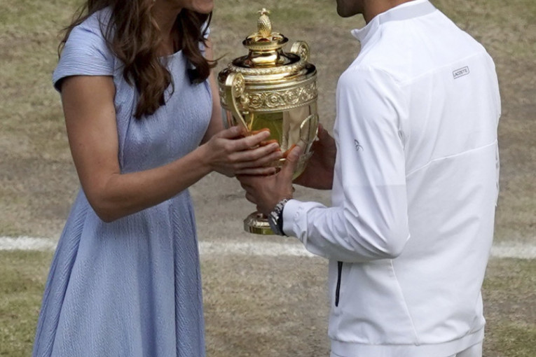 Foto: Tanjug/APPo završetku meča usledila je ceremonija, a srpskom teniseru je prehar uručila vojvotkinja od Kembridža Kejt Midlton.