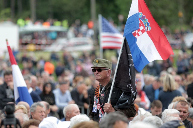 Foto: Tanjug/D. GRIZELJ"Zakolji četnika i izvadi mu oči jer na Pujankama to nije zločin", stoji na zidu uz ustaški simbol iznad natpisa.
