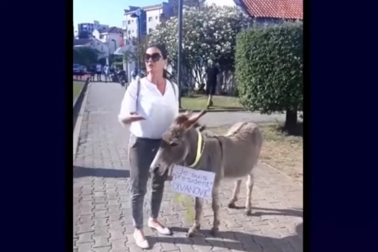 Bivša urednica TV Budva Iva Bajković juče ujutro je ispred zgrade opštine Budva dovela magarca, kojem je na vratu bila okačena poruka "Je suis president Divanovic" (Ja sam predsednik Divanović).