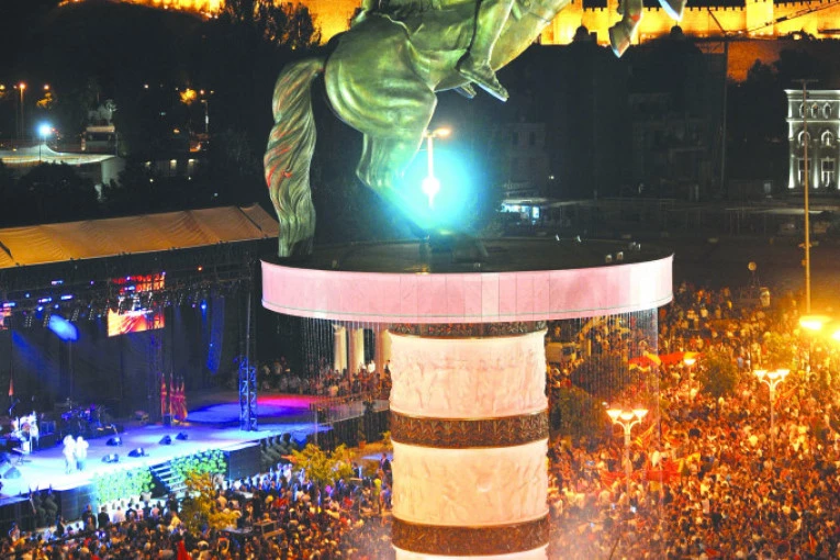Makedonska vlada potrošila je od 2010. do 2014. čak 700.000.000 evra kako bi dokazala antičko poreklo svog naroda, izgradivši u rekordnom roku 40 spomenika i 20 monumentalnih građevina, koje će sada, kako bi se dodvorila Grčkoj, morati da sruši ili preimenuje. Takva odluka mogla bi da usledi svakog trenutka nakon što se vlada makedonskog premijera Zorana Zaeva povukla pred protestima u Atini i odrekla Aleksandra Makedonskog u sklopu iznalaženja rešenja za novo ime države naših južnih suseda.