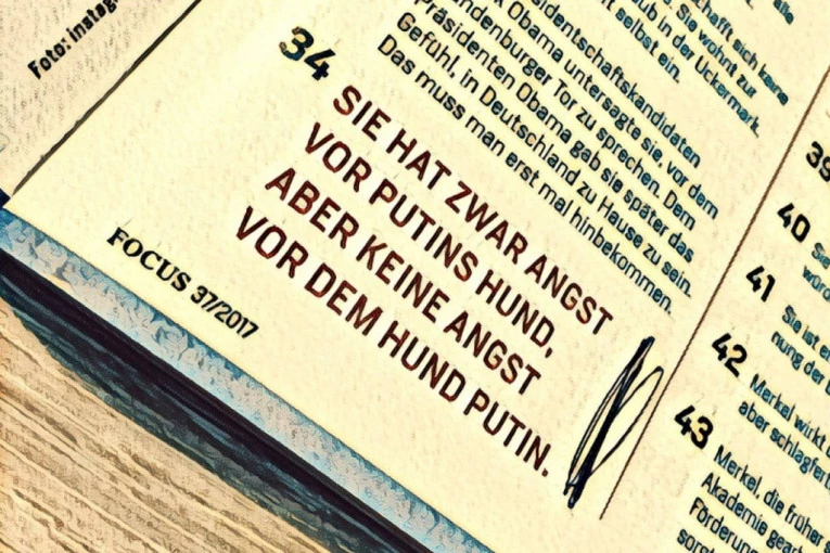 Radi se o članku posvećenom nemačkoj kancelarki Angeli Merkel u kojem se nalazi fraza: "Naravno, ona se plaši psa Putina, ali se sigurno ne plaši psa-Putina". Mediji su objavili da je Ambasada Rusije tu izjavu nazvala "bezukusnom i glupom" i zatražila izvinjenje od nemačkih novinara.
