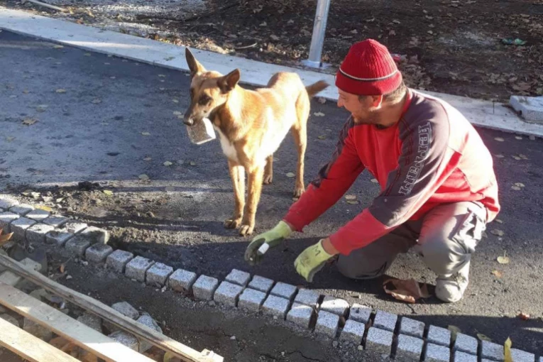 - Radnici su imali i nesebičnu pomoć dva psa, koji su se dobrovoljno pridružili radovima. Naime, psi su sami donosili betonske kocke od istovarene gomile, do radnika, strpljivo, jednu po jednu... Radi se o desetak metara udaljenosti, a prema rečima radnika, "dobrovoljci" nijednu kocku nisu ispustili - napisali su na Fejsbuk stranici "Gradskog stambenog".