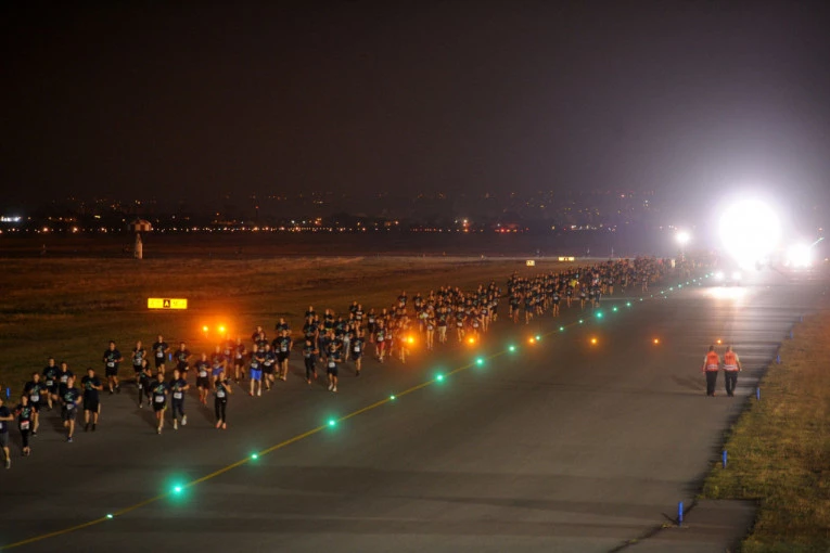 Foto: Tanjug/F. KRAINČANIĆAtraktivna trka od pet kilometara na deonici poletno-sletne i rulne staze, zbog koje beogradski aerodrom nije imao letove od ponoći i pet sati kasnije, jedinstven je događaj u regionu koji su organizovali aerodrom "Nikola Tesla", Beogradski maraton i Grad Beograd.